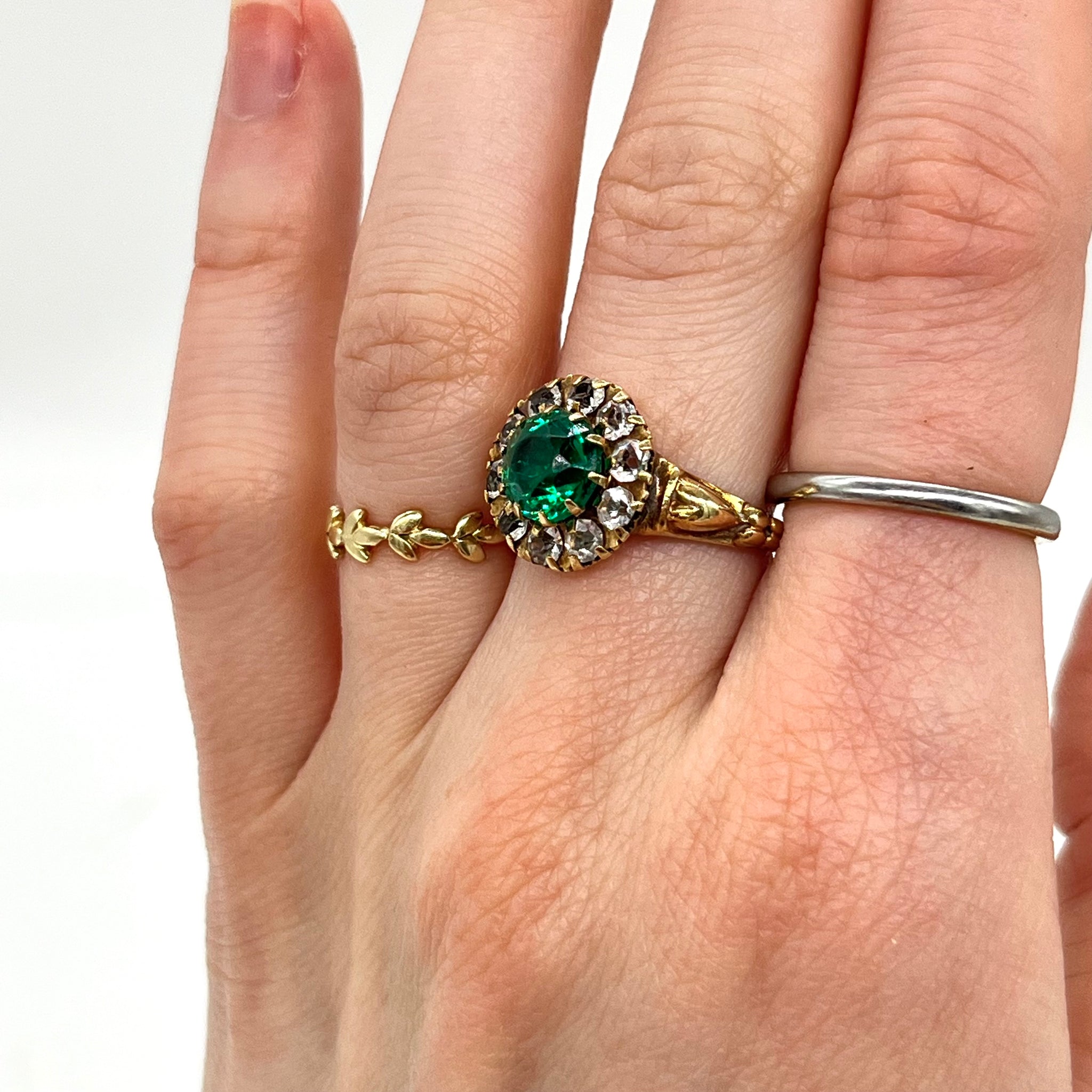 10k Yellow Gold Ring w/ Green Stone (size 6.5)