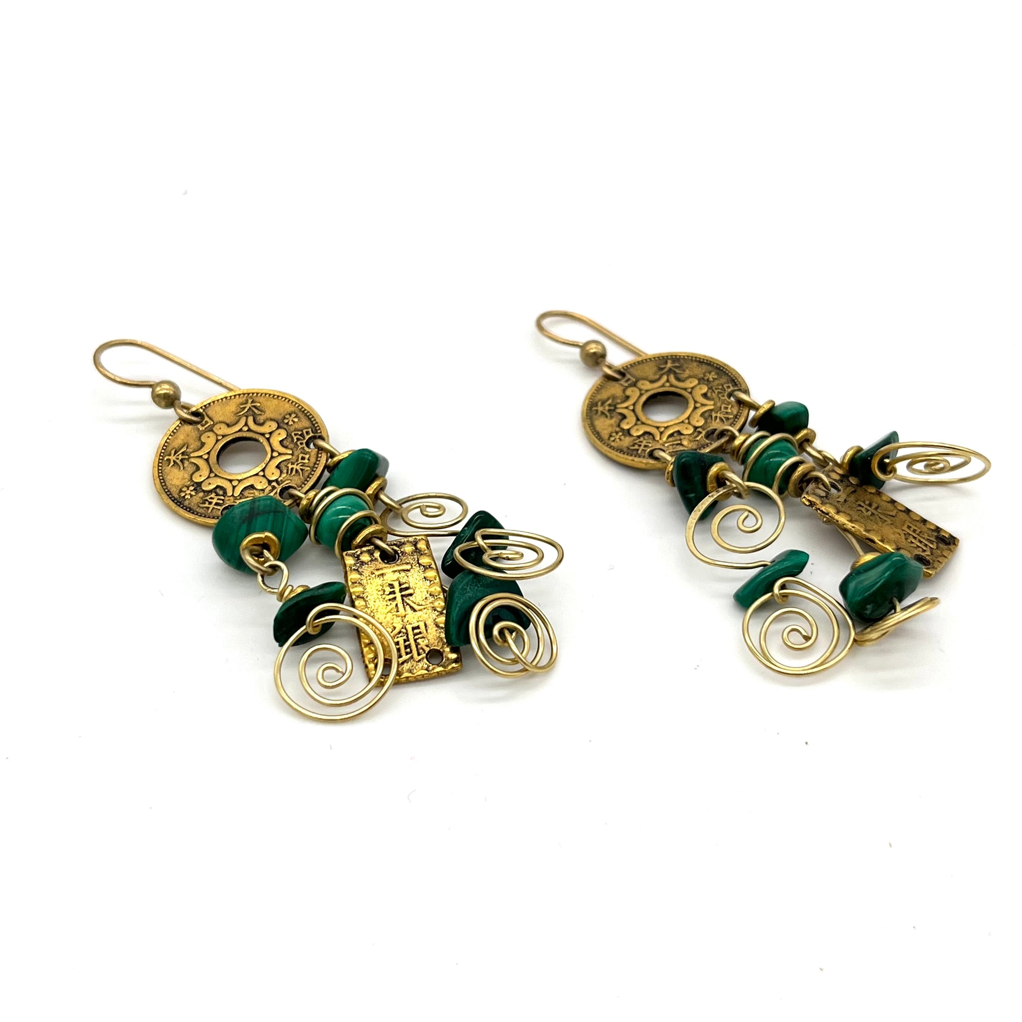 Brass and Malachite Earrings