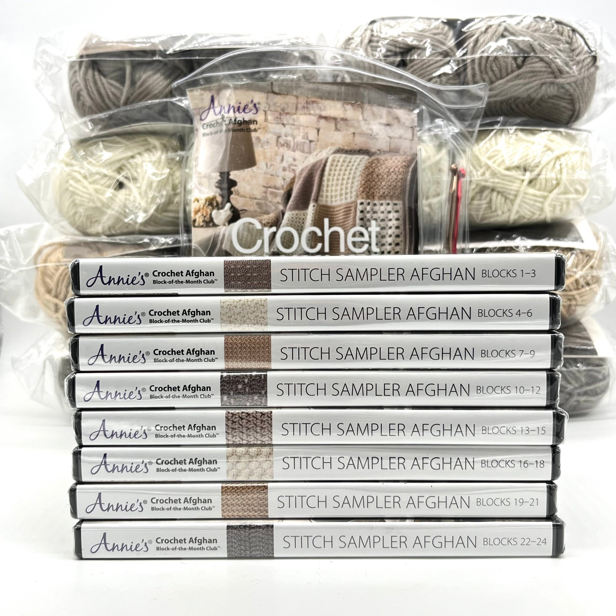 Annie's Crochet Afghan Kit Set (8 packs & instruction DVDs)